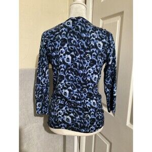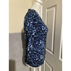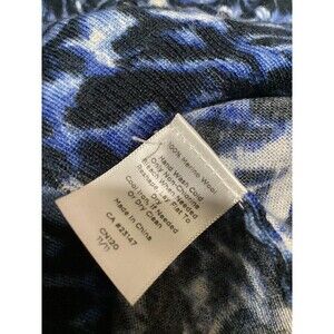 Talbots Sweater Womens Petite P Blue Leopard Pure Italian Merino 3/4 Sleeve