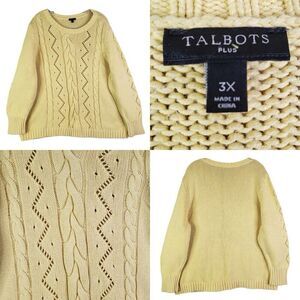 Talbots Sweater Women's Plus Size 2x Pullover Knit Yellow Pointelle Knit