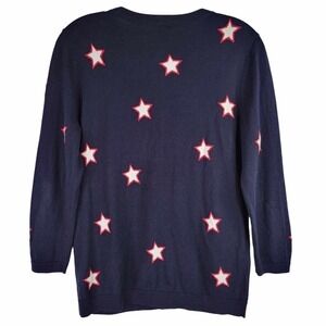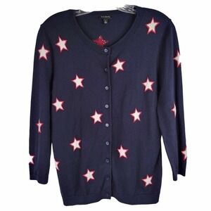 Talbots Sweater Women's Size S Navy Blue Star Print LS Cardigan Cotton Patriotic
