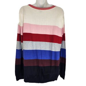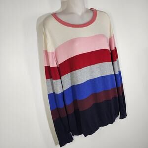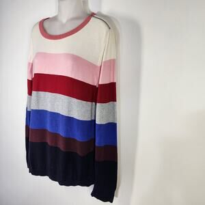 Talbots Sweater Women's Size XL Colorful Striped Knit Zip Shoulder Lightweight