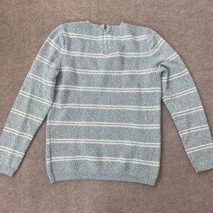 Talbots Sweater Womens Small Light Teal Blue Striped Knit Top Pullover Zip Back