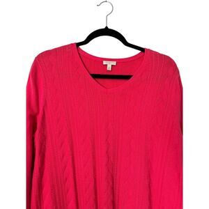 Talbots Sweater Womens Sz 1X Pink Cotton Long Sleeve Cable Knit V-Neck Pullover