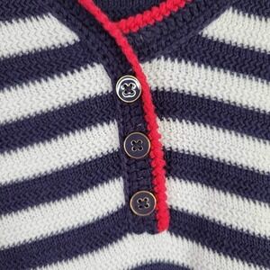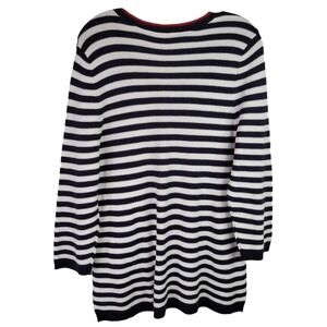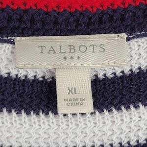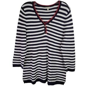 Talbots Sweater Women's XL Blue Red White Stripe Henley Pullover Cotton Coastal