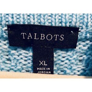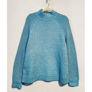 Talbots Sweater Womens XL Blue Textured Stitch Mock Neck Tunic Pullover Cozy