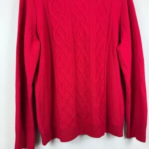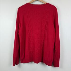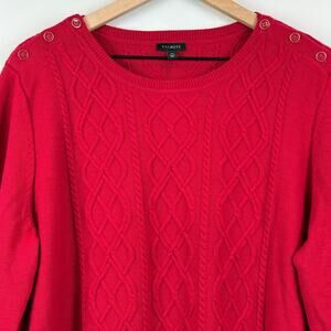 Talbots Sweater Women's XL Red Cable Knit Lambswool Shoulder Button Preppy NWT