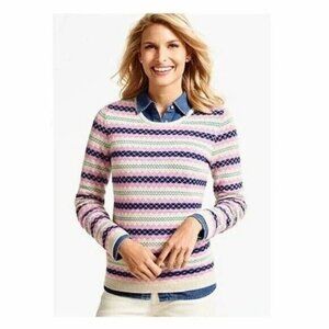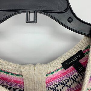 Talbots Sweater Womens Size Large Zip Back Jacquard Fair Isle Long Sleeve. Great pre-owned condition.