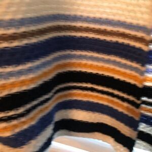 This rarely worn sweater is great with jeans, khakis or your favorite bottoms. The striped bottom adds to the versatility of the sweater