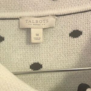 Talbots Sweater/Jacket Black White Polka Dot Size 1X Stand Up Neck Button Front