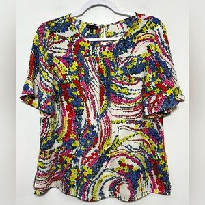 Talbots Swirling Floral Ruffle Sleeve Popover Blouse