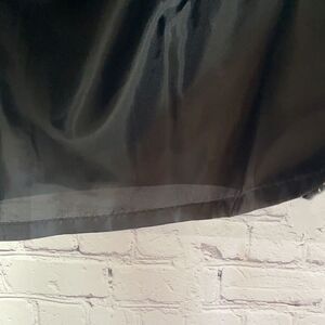 Perfect fall skirt! Equal parts classic and FUN! Black skirt, fully lined, with champagne colored Swiss dot pattern/texture. Belt with bow in matching fabric. Zips up the back. ADORABLE! Large scale pleats offer volume (not too full, but more volume than a pencil skirt for sure). Dress down with chambray or a simple black tee. Dress it up with a sequined tank or cashmere sweater. A really special skirt in excellent condition.