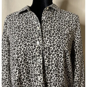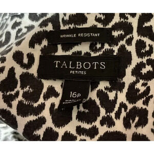 Talbots Sz 16P Petite Animal Leopard Print Button Up Blouse Wrinkle Resistant