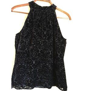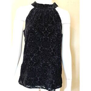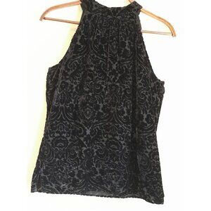 Talbots Sz 2/XS Velvet Burnout Holiday Formal Cocktail Elegant Halter Top Black