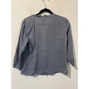 Talbot's Sz 6 Lightweight Chambray Blouse 3/4 Sleeves Ruffle Detail Button Front