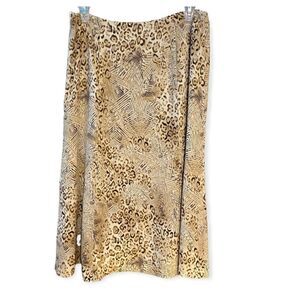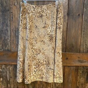 Talbots Sz 8 Leopard Beige Silk Fully Lined Elastic Waist Midi Skirt