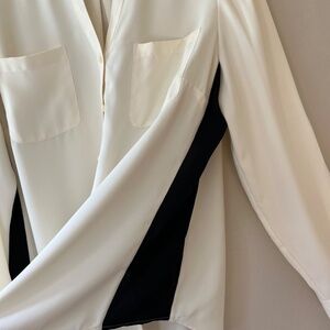 Talbots Sz L Contrast Trim Long Sleeves Blouse Button Down Collared Silky Pocket