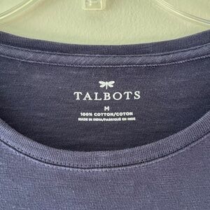 Talbots Sz M Navy Stretch Scottie Dogs n Snow Tee Shirt Blouse Pullover Top