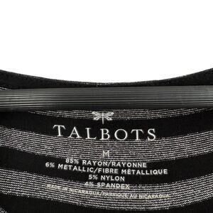 Talbots Sz Medium Metallic Sparkly Silver/Black Long Sleeve Blouse Shirt Top