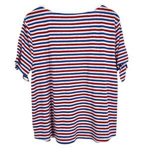 Talbots Sz XL LINEN BLEND Short Sleeve Red White Blue Blouse Shirt Top Patriotic