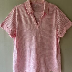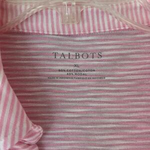 Talbots Sz XL Pink Stretch Open Split V Neck Roll Cuff Pullover Blouse Tee Shirt