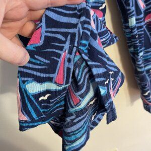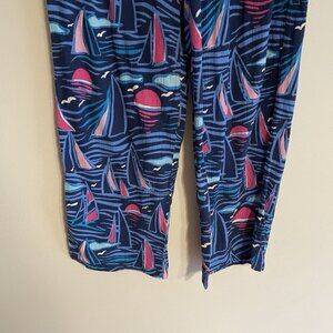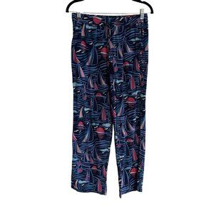 Talbots Women Sz XS Nautical Preppy Crinkle-Cotton Sailing Boats Wide Leg Beach Pants.