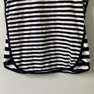 Talbots T By Talbots Stripe Short Sleeve Top Tee Crew Neck Trim Navy White