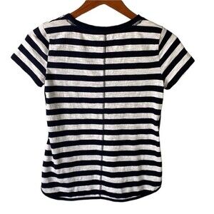 Talbots T by Talbots navy and white striped short sleeve tee top featuring trim detail.