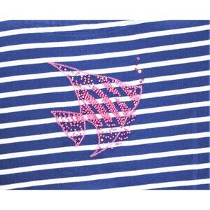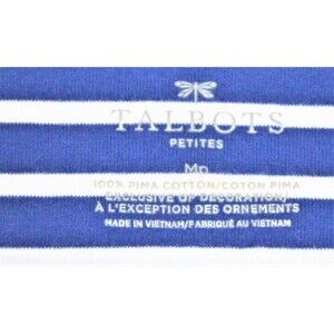 Talbots T Shirt Size PM Cotton Short Sleeve Nautical Blue & White Stripe
