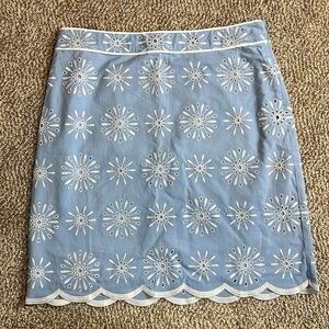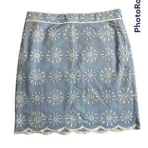 Talbots Chambray Eyelet A-line Skirt Embroidered
