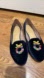 These Talbots flats feature a classic loafer silhouette in a striking blue hue, adorned with vibrant floral embroidery for a playful touch. Crafted with a soft, velvet-like material, they offer both comfort and style. Ideal for adding a pop of color to any casual ensemble.