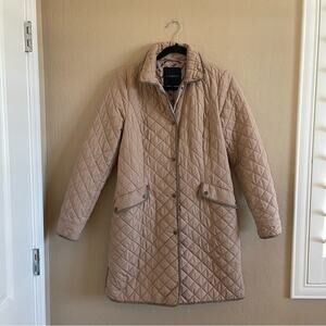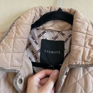 Talbots Tan Brown Leather Trim Quilted Trench Jacket