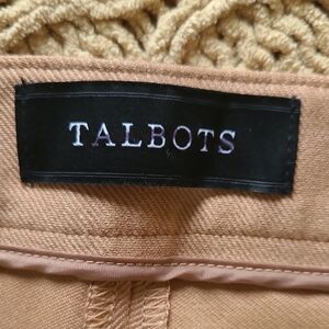 Talbots Tan Equestrian-themed Dalton Pants w/ Faux-Suede Patch - Size 16