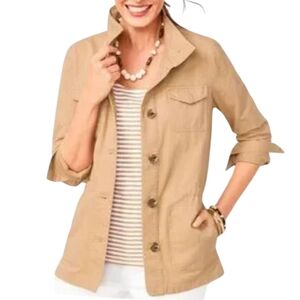 Talbots Tan Jacket Cotton Utility Safari Style Cinched Waist Sz S