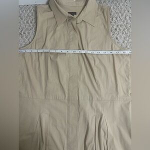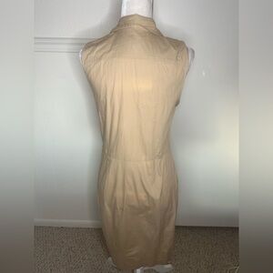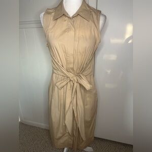 Excellent condition chic tan midi dress by Talbots. Features a stylish tie waist and sleeveless design. Perfect for versatile wear.