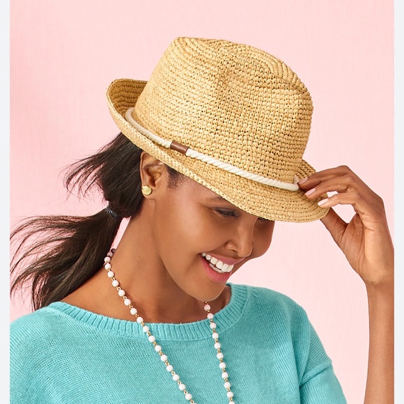 Chic straw fedora by Talbots. Ideal for sunny days. Adds elegance to any look.