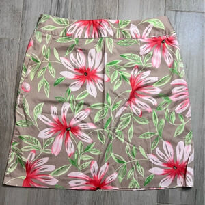 Talbots Tan and Red Cotton Stretch Floral Skirt, Women’s Size 12