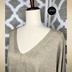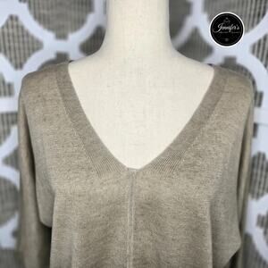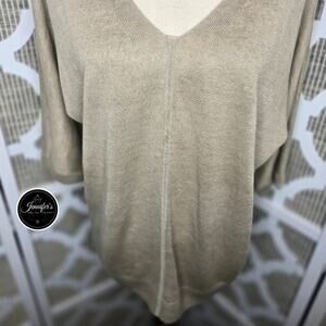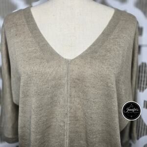 Talbots Tan/Taupe Linen Double V Neck Dolman Elbow Sleeve Lightweight Sweater M