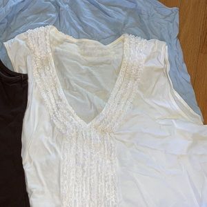 2. White, v neck, ruffles on neckline and down the middle (XL)