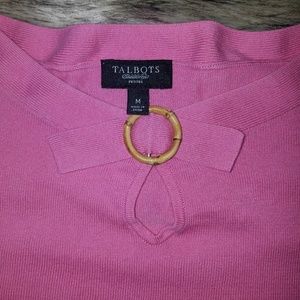 This pretty pink tank top has a bamboo looking detail over the cutout in the neckline. Material is like a lightweight sweater. Talbots brand size petite medium. EUC.