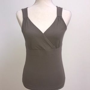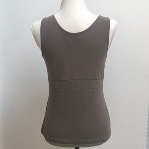 Talbots tank top in versatile putty color. 94% rayon, 6% spandex. 21 inches from shoulder to hem.