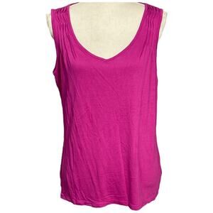Talbots Tank Top Women's Large Hot Pink Fuchsia V Neck Pleated Shoulders Chic