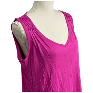 Talbots Tank Top Women's Large Hot Pink Magenta V Neck Pleated Shoulders Summertime Chic
