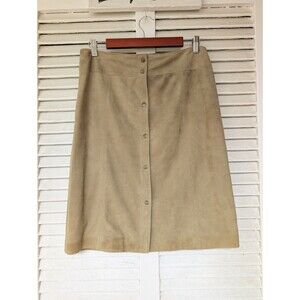 Talbots Taupe Beige Suede Skirt Suit Set- Collarless Jacket w/ Skirt-Sz Med
