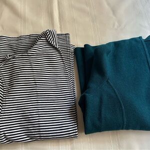 Bundle of 2 cardigans from the Talbots brand, size S. Their measurements are: shoulder 14.5", bust 17.5", length 22", and the sleeves: the green one measures 21" and the striped one with black 16".