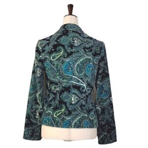 Talbots Teal Paisley Patterned Velvet Stretch Buttoned Blazer Size 4