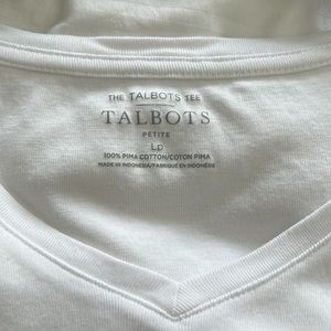 Talbots tee V neck 100% Pima Cotton 23” long from shoulder to hem Took off the tags but never worn