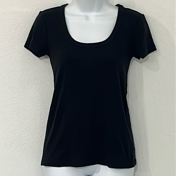 This comfy Tee is 95% cotton and 5% Spandex. It is in good condition with no wear or odors. Pit to pit measures 15”. Non smoker home