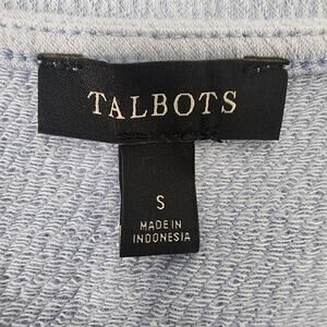 Talbots Tee Womens Small Ruffle Shoulder Voop Neck Elbow Sleeves Blue Textured