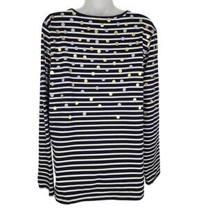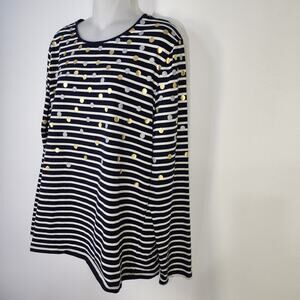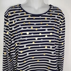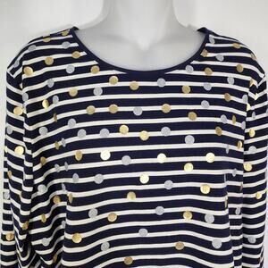 Talbots Tee Women's XL Navy Long Sleeve Crewneck Stripe Metallic Dot Gold Silver