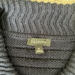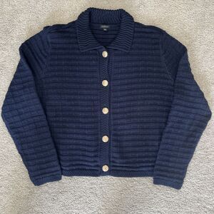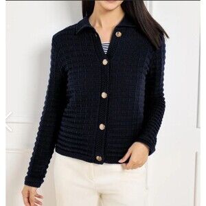 Talbots Textured Polo Cardigan Womens XL Navy Blue Knit Old Money Gold Button