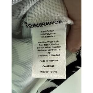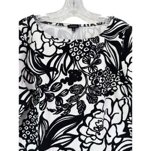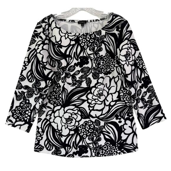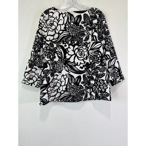 Talbots Textured Ribbed Knit Boat Neck Black White Floral Top Size M 3/4 Sleeves